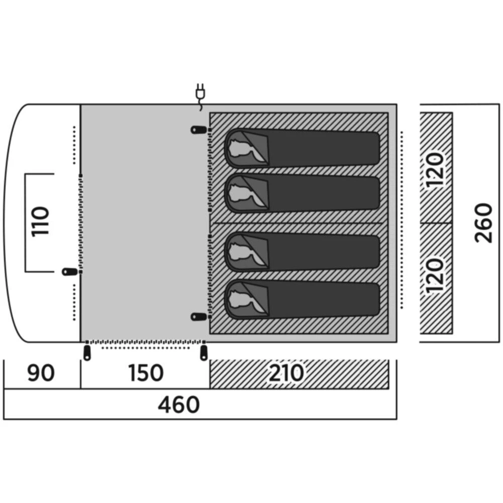 - Tunnel Design: Optimised tent format, maximising living and sleeping space.
